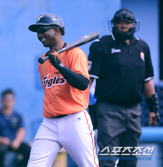 | 한화 이글스 외국인 타자 나이저 모건이 지난 2월21일 일본 오키나와 아카마 구장에서 열린 삼성 라이온즈와의 연습경기 때 1번 중견수로 선발 출전했다. 모건이 1회초 선두타자로 나와 삼진아웃을 당한 뒤 멋쩍은 미소를 지으며 덕아웃으로 돌아가고 있다. 오키나와(일본)=김경민 기자 kyungmin@sportschosun.com |