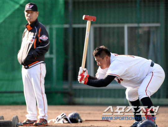 한화 이글스가 18일 일본 고치 시영구장과 동부구장에서 2015 스프링캠프를 펼치고 있다. 이날 오후 일본 고치 동부구장에서 선수들이 김성근 감독이 지켜보는 가운데 타격훈련을 하고 있다. 한화는 2015 전지훈련을 3월 3일까지 48일 동안 일본 고치와 오키나와에서 실시한다. 김성근 감독을 포함한 코칭스태프 23명과 주장 김태균을 포함해 선수 58명, 총 81명의 한화 이글스 선수단은 고치 시영구장과 동부구장에서 전지훈련을 진행한 후 2월15일 일본 오키나와로 이동해 고친다 구장에서 3월3일까지 전지훈련을 진행한다. 고치(일본)=허상욱 기자 wook@sportschosun.com/2015.01.18/ |