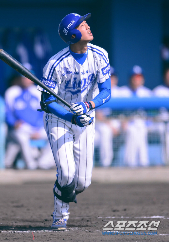 비록 시범경기라고 해도 1군 첫 데뷔전인 구자욱으로선 첫 타석에서 팬들에게 자신의 이름을 확실히 각인시키는 플레이를 했다.