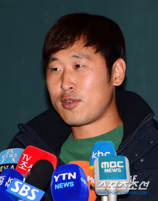 윤석민은 1년여 만에 KIA타이거즈에 복귀했다. 윤석민은 KIA와 계약금 40억원, 연봉 12억5천만원 등 4년간 총 90억원에 계약을 체결했다. 입국장에서 인터뷰에 응하고 있는 윤석민. 인천=송정헌 기자 songs@sportschosun.com/2015.03.06 |