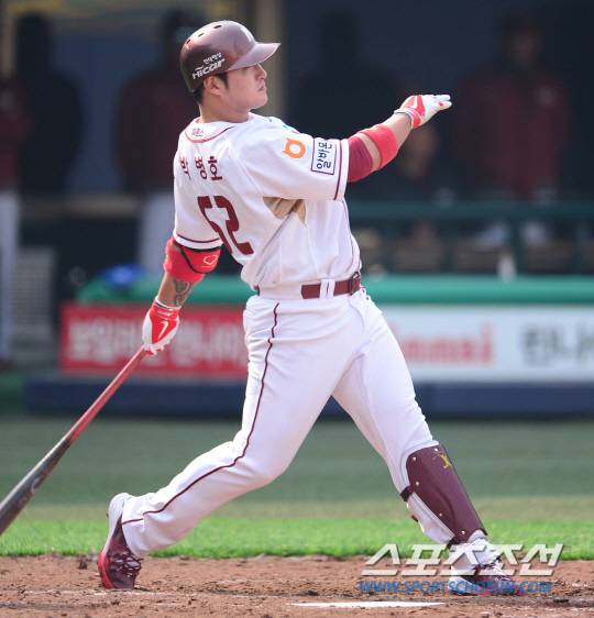 넥센 히어로즈 4번타자 박병호가 백스크린 상단을 직격하는 두 번째 홈런을 날렸다.