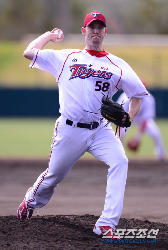 11일 오후 일본 오키나와 킨쵸 베이스볼 스타디움에서 KIA 타이거즈의 훈련이 열렸다.KIA 스틴슨이 라이브 피칭을 하고 있다.오키나와(일본)=김경민 기자 kyungmin@sportschosun.com