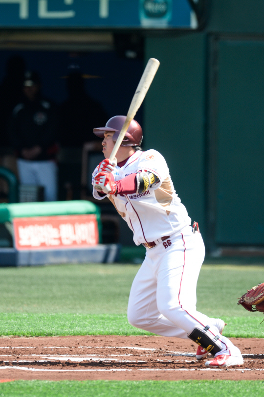 염경엽 감독은 올해 1군에서 주목할 선수 중 한 명으로 강지광을 꼽았다. 하위타선에서 역할을 해주길 기대하고 있다. 그런 강지광이 시범경기 첫 날부터 또다시 부상 위험에 직면했다.
