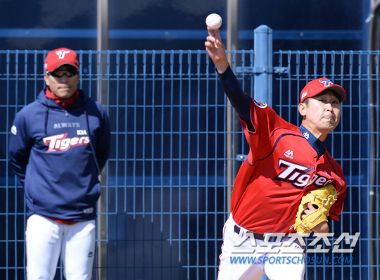 지난 6일에 귀국한 윤석민은 빠르게 팀의 일원으로 녹아들고 있다. 당초 예정보다 하루 정도 빠르게 팀에 합류했고, 지난 9일부터는 포항 원정에 동행하며 실전등판 시기를 조율하고 있다. 그런 윤석민이 10일 KIA 유니폼을 입고 첫 불펜 피칭을 완료했다. 경기가 취소될 만큼 추운 날씨였지만, 42개의 공을 신중히 던졌다. 평가는 대체로 좋았다. 김기태 감독과 조계현 수석코치, 이대진 코치 등이 윤석민의 첫 불펜투구를 지켜본 뒤 "몸을 잘 만든 것 같다"며 만족감을 표시했다.