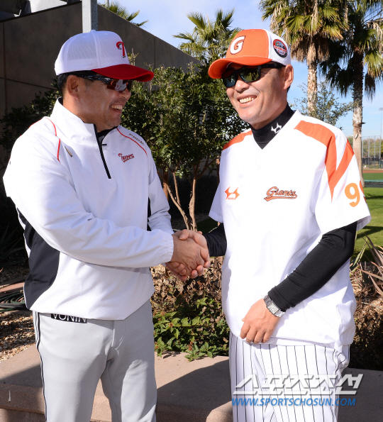이 감독도 질 수 없었다. 이종운 기자로 양 감독을 향해 날카로운 질문을 날려줄 것을 부탁했다. 이 감독은 주저없이 양 감독에게 핵펀치를 날렸다. 질문은 "올해 우승하실거죠?"였다. 이 말을 들은 양 감독은 뭐라고 답을 했을까. 같은 부산 출신 선배로 이 감독을 향해 걸쭉한 사투리를 내뱉었다. "거, 헛소리 하지 마소."