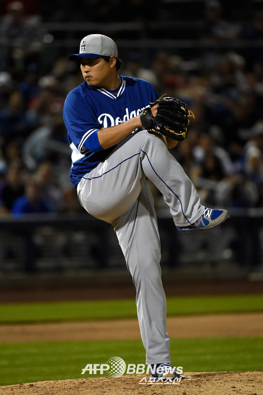 LA 다저스 류현진은 앞으로 시범경기 세 차례 등판을 남겨놓고 있다. 등 부상으로 시범경기 첫 등판이 늦어지기는 했지만 시즌 준비에는 아무 이상이 없다. 지난 13일(한국시각) 샌디에이고전에 등판한 류현진. ⓒAFPBBNews = News1