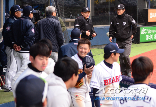 18일 잠실구장에서 2015 KBO리그 시범경기 두산과 NC의 경기가 열렸다. 두산과 NC가 5회까지 5대5를 기록했다. 6회를 앞두고 비가 내리는 날씨 속에 강우 콜드가 선언되고 있다. 잠실=송정헌 기자 songs@sportschosun.com/2015.03.18
