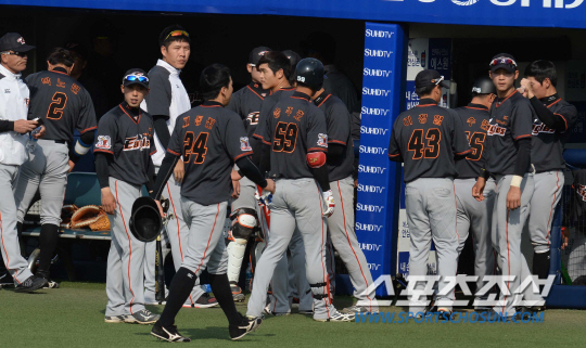 한화 이글스와 삼성 라이온스의 프로야구 시범경기가 21일 대구구장에서 열렸다. 삼성에 3-9로 패하며 6연패를 한 한화 선수들이 덕아웃으로 들어가고 있다. 대구=정재근 기자 cjg@sportschosun.com/2015.03.21/ |