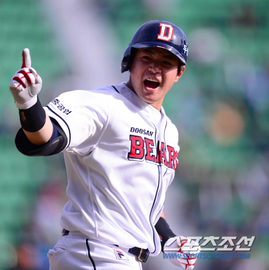두산 베어스의 새로운 1루수 김재환이 역전 솔로포로 시즌 첫 홈런을 장식했다.