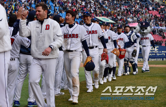 하지만 두산은 4회말 반격을 시작했다. 김현수의 우중간 안타와 루츠의 3루수 앞 땅볼 때 상대 실책이 나와 무사 2,3루가 됐다. 홍성흔의 볼넷으로 무사 만루. 오재원의 좌익수 희생플라이로 첫 득점에 성공한 두산은 계속된 2사 만루서 김재호의 2타점 중전 적시타로 3-4까지 추격했다.