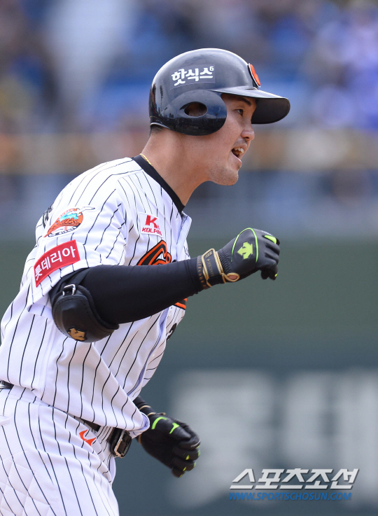 2015 KBO리그 롯데자이언츠와 kt위즈의 개막전 경기가 28일 부산사직야구장에서 열렸다. 롯데 5회말 1사 2,3루에서 박종윤이 역전 좌월 3점홈런을 치고 그라운드를 돌고있다. 사직=최문영 기자 deer@sportschosun.com /2015.03.28/ |