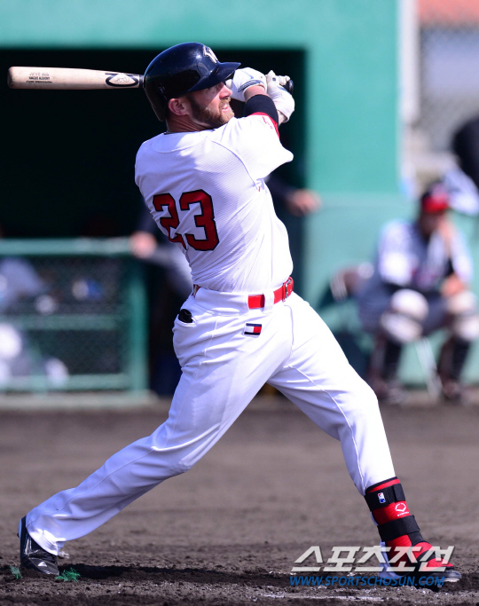 SK 브라운이 외야 플라이를 치고 있다. 오키나와(일본)=김경민 기자 kyungmin@sportschosun.com / 2015.02.20.