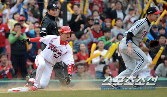 | KIA와 LG의 2015 KBO 리그 개막전 경기가 28일 광주기아챔피언스필드에서 열렸다. 7회말 무사 1루 KIA 최용규가 우중간에 떨어지는 1타점 3루타를 치고 슬라이딩을 하고 있다.광주=허상욱 기자 wook@sportschosun.com/2015.03.28/ |