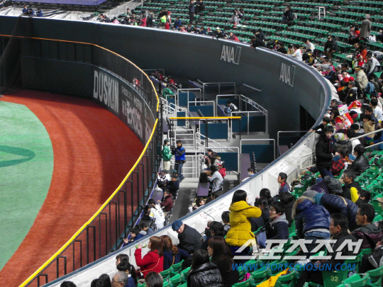 | ◇후쿠오카 야후오크돔의 외야 홈런테라스 모습. 좌중간, 우중간쪽에 펜스를 최대 5m까지 앞당겨 그 빈 공간에 홈런 테라스라는 좌석을 만들었다. 스포츠조선DB |