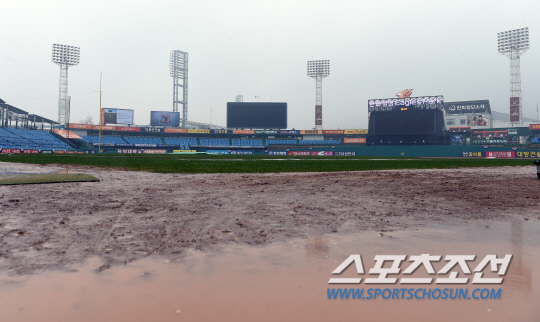 31일 대전 한화생명 이글스파크에서 열릴 예정이던 2015 프로야구 두산과 한화의 경기가 우천 취소됐다. 대전=김경민 기자 kyungmin@sportschosun.com / 2015.03.31.