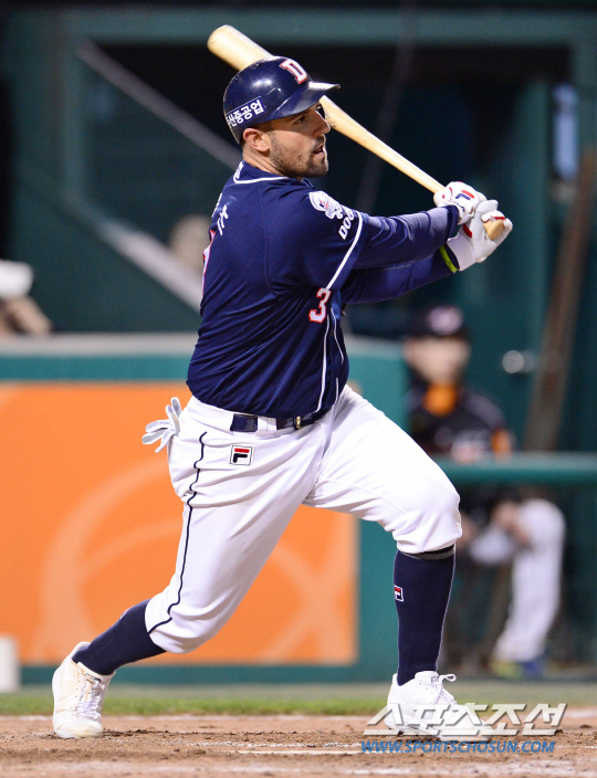 두산 베어스 외국인 타자 잭 루츠의 한국 데뷔 첫 홈런이 터졌다.
