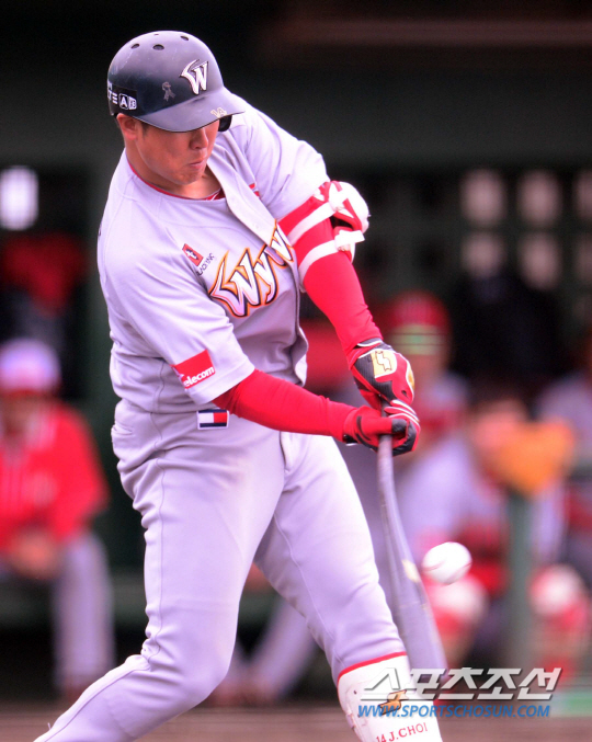 풀카운트에서 한복판 높게 들어온 실투를 놓치지 않았다. 최 정의 시즌 첫 홈런, SK가 7-0으로 크게 앞서가고 있다.