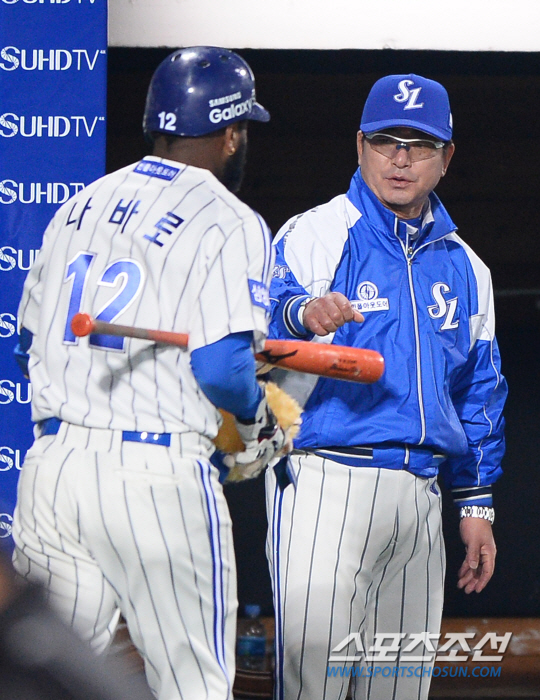 8일 대구시민야구장에서 KBO리그 삼성과 롯데의 주중 3연전 두 번째 경기가 열렸다. 삼성 윤성환과 롯데 이상화가 선발 맞대결을 펼쳤다. 삼성 나바로가 3회 무사 1, 3루에서 롯데 이상화를 상대로 3점홈런을 날렸다. 덕아웃에서 류중일 감독과 하이파이브를 나누고 있는 나바로. 대구=송정헌 기자 songs@sportschosun.com