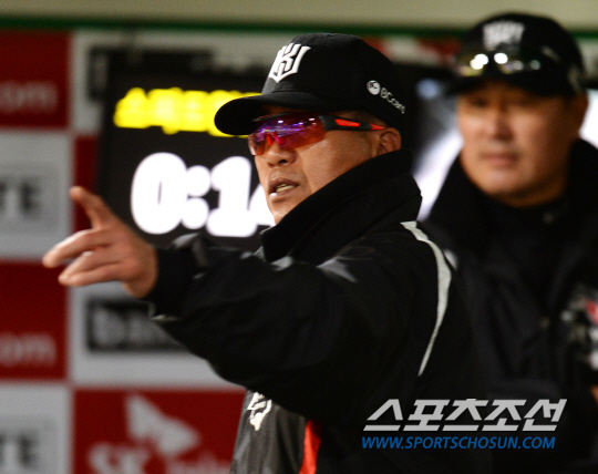 KT위즈와 SK와이번스의 2015 프로야구 경기가 8일 인천구장에서 열렸다. KT 조범현 감독이 경기 중 작전지시를 하며 승리에 대한 강한 의지를 보이고 있다. 인천=정재근 기자 cjg@sportschosun.com/2015.04.08/ |