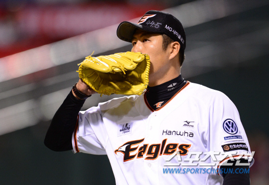 포철공고를 졸업하고 2002년 삼성에 입단해 13년을 뛰었다. 평생 '삼성 사람'으로 남을 줄 알았는데, 올해 그는 이글스 불펜의 키를 쥐고 있는 핵심 멤버다. 권 혁이 5회초 등판해 2⅓이닝 무실점을 기록한 7일 LG 트윈스전에서 한화는 연장 11회말 끝내기 안타로 이겼고, 8회초 등판해 2점 홈런을 맞은 8일에는 2대3 역전패를 당했다. 8일 대전 한화생명 이글스파크에서 권 혁은 만난 한화 야구 얘기를 들어봤다.