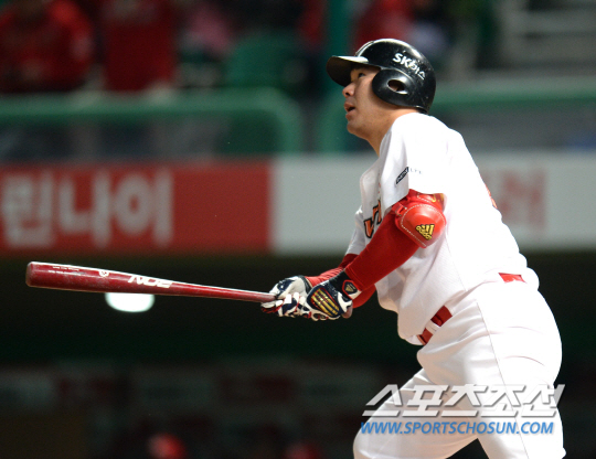 KT위즈와 SK와이번스의 2015 프로야구 경기가 8일 인천구장에서 열렸다. 6회말 1사 2, 3루 SK 이재원의 1타점 희생플라이를 치고 있다. 인천=정재근 기자 cjg@sportschosun.com/2015.04.08/ |