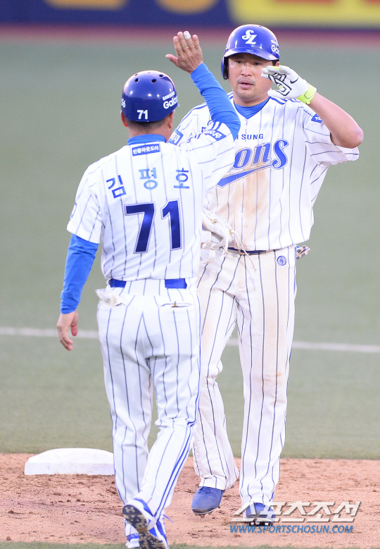 박한이가 역대 23번째 2500루타를 기록했다. 11일 대구 시민야구장에서 KBO리그 KIA 타이거즈와 삼성 라이온즈의 경기가 열렸다. KIA는 최근 4연패를 삼성은 4연승을 기록 중이다. 박한이가 5회 2루타를 기록하며 프로 통산 2500루타를 기록했다. 김평호 코치와 하이파이브를 나누고 있는 박한이. 대구=송정헌 기자 songs@sportschosun.com