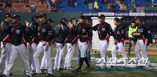 kt 조범현 감독은 창단 후 처음으로 1군 경기에서 선수들과 승리의 악수를 나눴다. 한국시리즈까지 제패했던 감독이지만, 이날만큼은 웃음과 격한 감정이 교차하는 듯 보였다.
