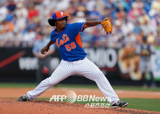 | 뉴욕 메츠 마무리 헨리 메히아가 금지약물 복용으로 80경기 출전 금지 처분을 받았다. 지난달 디트로이트 타이거스와의 시범경기에서 투구를 하고 있는 메히아. ⓒAFPBBNews = News1 |