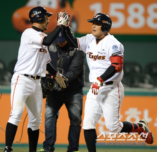 그러나 한화의 방망이도 강력했다. 3회말 9번 권용관이 한화 이적 첫 홈런을 터뜨리며 추격을 시작했다. 2사 1루서는 4번 김태균이 좌중간 담장을 넘기는 동점 투런포를 쏘았다. 여기서 멈추지 않았다. 5번 최진행의 좌전안타에 이어 6번 이성열이 가운데 담장 상단을 맞히는 큼직한 3루타를 터뜨리며 4-3으로 역전까지 했다.