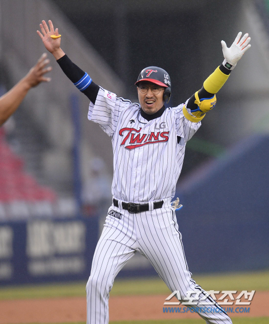| LG 트윈스 정성훈은 14일 현재 타율과 최다안타 1위를 달리고 있다. 서건창이 빠진 최다안타왕 경쟁에서 주목받고 있는 타자다. 정성훈이 지난 5일 삼성전에서 끝내기 안타를 치고 포효하고 있다. 최문영 기자 deer@sportschosun.com |