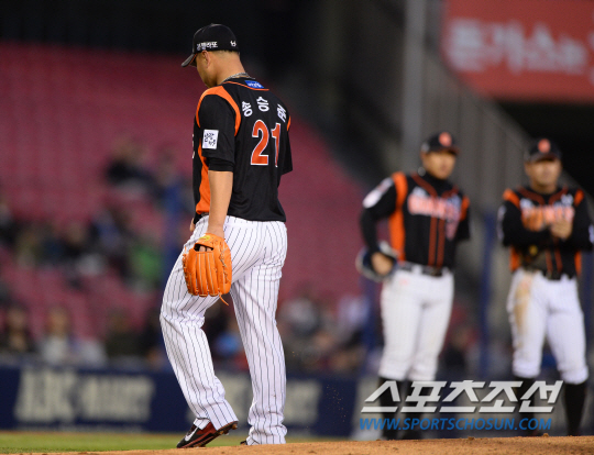 스피드, 제구력, 위기관리능력 모두 평소와 달랐다. 게다가 날씨마저 쌀쌀해 컨디션을 회복하기 힘들었다. 선두 민병헌에게 141㎞ 직구를 낮게 던졌지만 좌익수 왼쪽에 떨어지는 2루타가 되면서 위기가 시작됐다. 이어 정수빈에게 우전안타를 맞아 무사 1,3루. 김현수의 유격수 땅볼 때 첫 실점한 송승준은 홍성흔을 몸에 맞는 공으로 내보내며 다시 위기에 몰렸다.