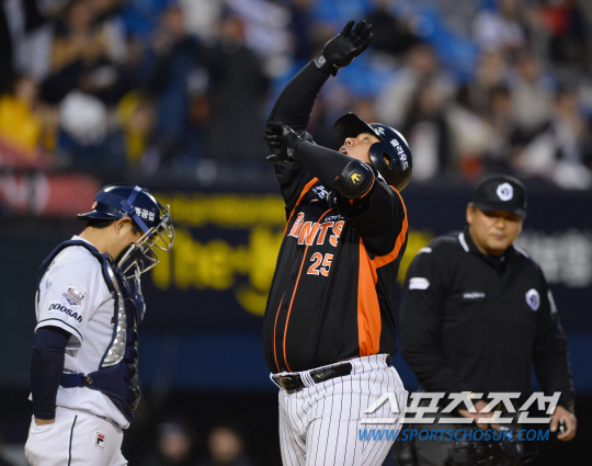 17일 잠실구장에서 KBO리그 두산 베어스와 롯데 자이언츠의 주말 3연전 첫 번째 경기가 열렸다. 롯데 최준석이 2회 선두타자로 나와 두산 니퍼트를 상대로 좌중월 솔로홈런을 날렸다. 홈에 들어오고 있는 최준석. 잠실= 송정헌 기자 songs@sportschosun.com
