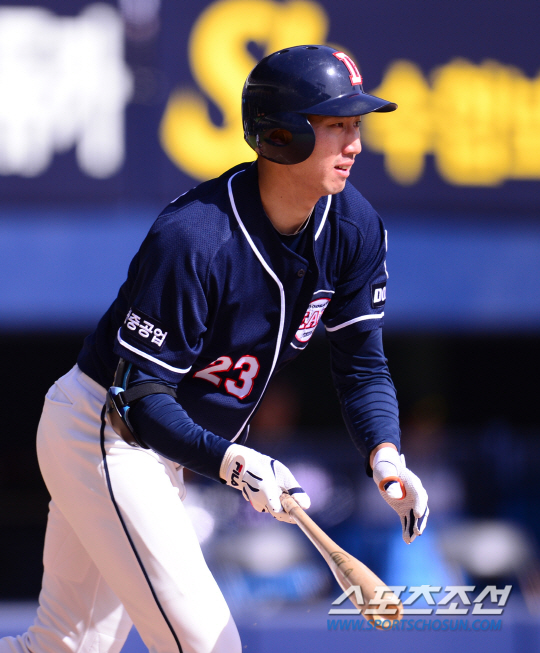 스프링캠프에서 적극적인 스윙으로 신임 김태형 감독의 눈도장을 찍은 그는 올 시즌 백업 외야수로 활약하고 있다. 이날 잠수함 투수에 약한 민병헌 대신 우익수로 출전한 그는 결국 6회 추격을 알리는 홈런을 터뜨렸다. 목동=류동혁 기자 sfryu@sportschosun.com