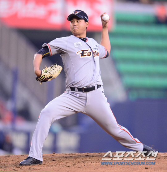 유창식이 연습 투구를 했다. 계속 던지기로 했다. 한화 코칭스태프가 그대로 내려갔다.