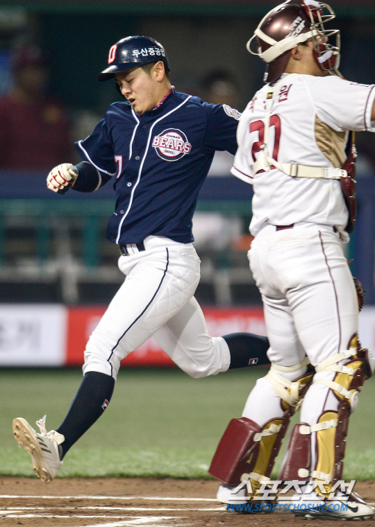 그런데 3루를 도는 과정에서 베이스를 밟지 못했다. 3루 주루코치의 적극적 제지로 최주환은 다시 3루 베이스를 밟은 뒤 홈으로 뛰기 시작했다.