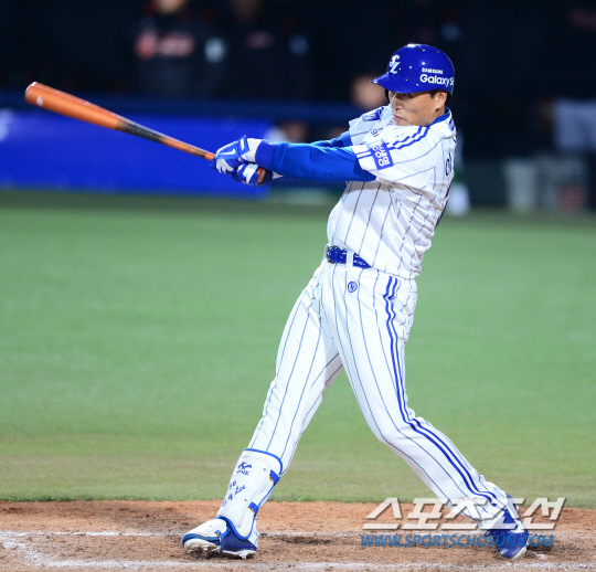 삼성 이승엽이 22일 마산 NC전에서 시즌 4호포를 쏘아올렸다. 지난 15일 한화전 이후 4경기만에 손맛을 봤다. 이승엽은 이날 팀이 3-2로 앞선 6회초 NC선발 노성호를 상대로 1점 홈런을 뽑아냈다. 볼카운트 투볼 원스트라이크에서 4구째 126㎞짜리 바깥쪽 높은 슬라이더를 밀어쳤다. 이승엽은 이날 홈런을 비롯해 최근 5경기 연속 안타다.