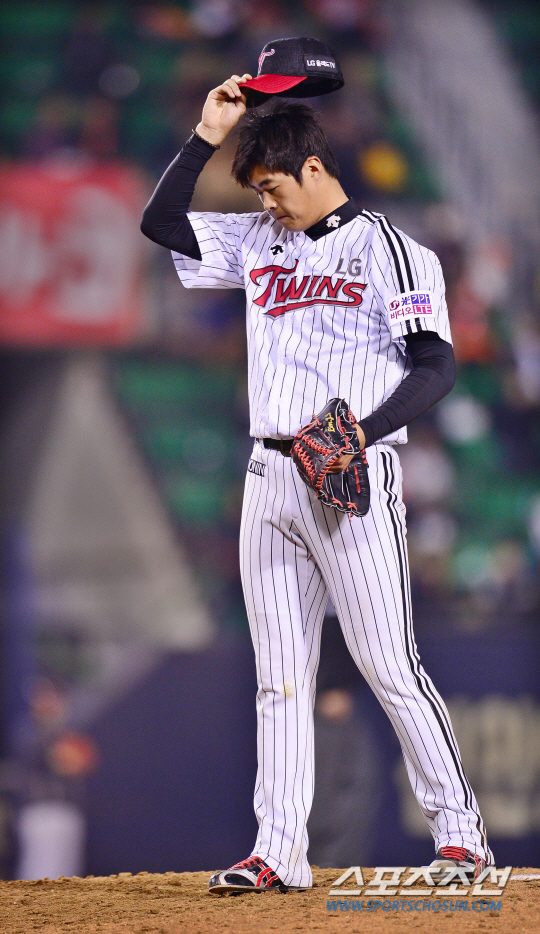 22일 오후 서울 잠실야구장에서 2015 프로야구 한화와 LG 경기가 열렸다. 4회초 1사 2루서 LG 임지섭이 교체되고 있다. 잠실=김경민 기자 kyungmin@sportschosun.com / 2015.04.22.
