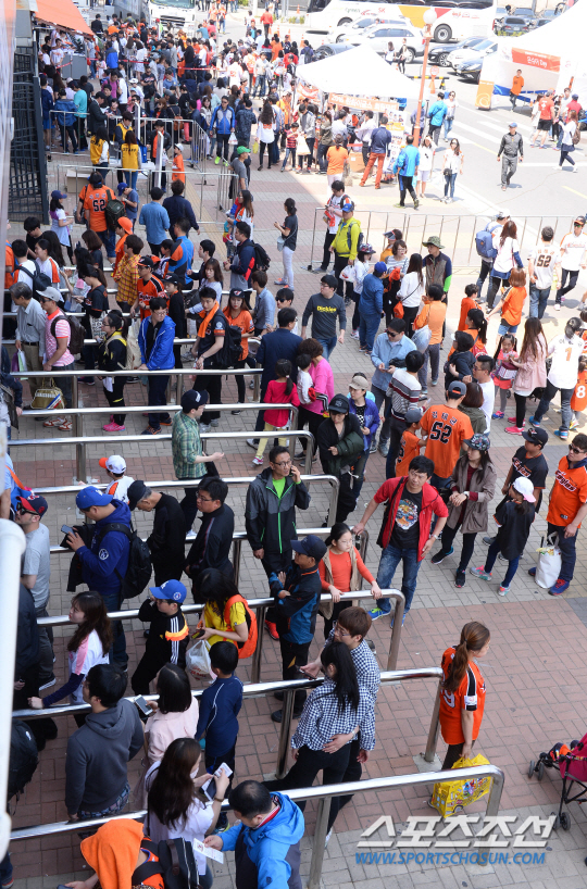 2015 KBO리그 한화이글스와 SK와이번즈의 경기가 26일 대전 한화생명 이글스파크에서 열렸다. 경기전 수많은 관중들이 매표소 앞에서 줄을 서고 있다. 전날 SK와의 경기에서도 한화 이글스 파크는 스승과 제자의 대결을 보러온 관중들로 만원을 이뤘다. 대전=최문영 기자 deer@sportschosun.com