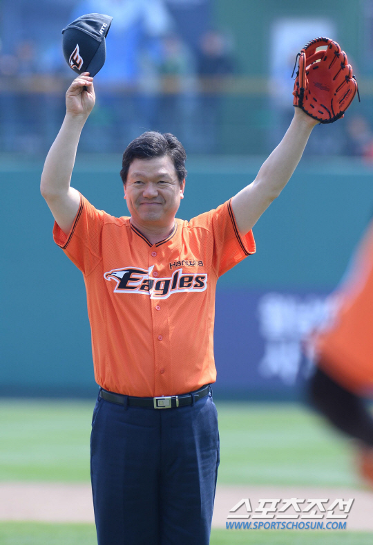 2015 KBO리그 한화이글스와 SK와이번즈의 경기가 26일 대전 한화생명 이글스파크에서 열렸다. 경기전 과학기술인공제회 김영식 이사장이 기념시구를 하고있다. 대전=최문영 기자 deer@sportschosun.com /2015.04.26/
