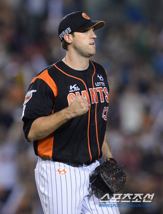 2015 KBO리그 두산베어스와 롯데자이언츠의 경기가 18일 서울잠실야구장에서 열렸다. 롯데 선발투스 린드블럼이 8회말 2사후 허경민을 땅볼처리하며 주먹을 불끈 쥐고있다. 잠실=최문영 기자 deer@sportschosun.com /2015.04.18/