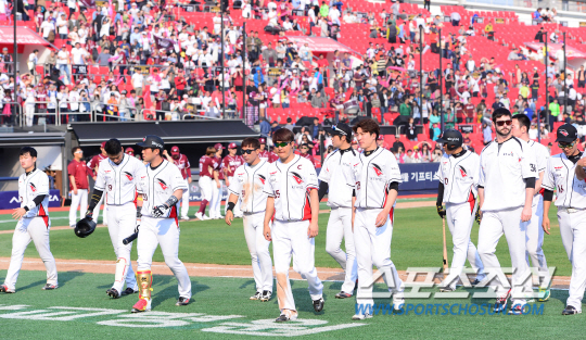 26일 수원 케이티위즈파크에서 KBO리그 kt 위즈와 넥센 히어로즈의 경기가 열렸다. 넥센이 kt에 11대4로 승리하며 시리즈 스윕을 달성했다. 경기 종료 후 아쉬운 표정으로 그라운드를 나서고 있는 kt 선수들. 수원=송정헌 기자 songs@sportschosun.com/2015.04.26 |