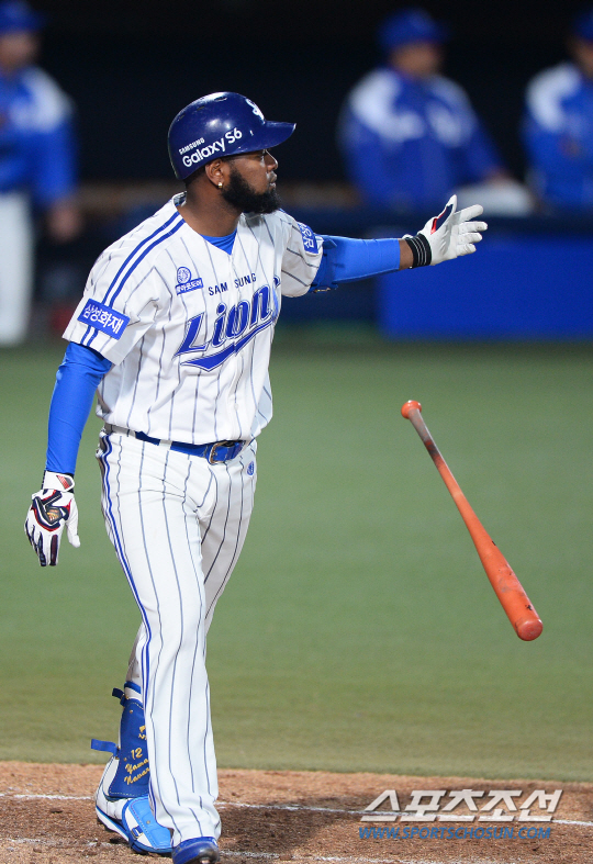8일 대구시민야구장에서 KBO리그 삼성과 롯데의 주중 3연전 두 번째 경기가 열렸다. 삼성 윤성환과 롯데 이상화가 선발 맞대결을 펼쳤다. 삼성 나바로가 3회 무사 1, 3루에서 롯데 이상화를 상대로 3점홈런을 날렸다. 타구를 확인하며 방망이를 내려놓고 있는 나바로. 대구=송정헌 기자 songs@sportschosun.com