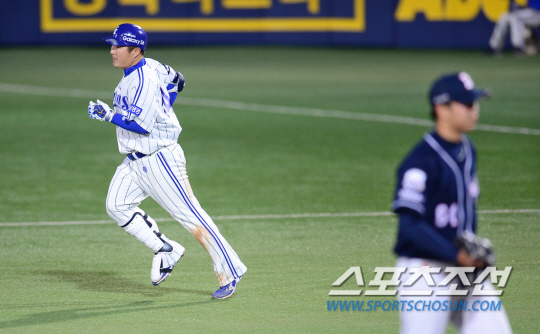 1일 오후 대구 시민야구장에서 2015 프로야구 두산과 삼성의 경기가 열렸다. 회말 2사 2루서 삼성 최형우가 우중월 2점 홈런을 친 후 그라운드를 돌고 있다. 대구=김경민 기자 kyungmin@sportschosun.com / 2015.05.01. |
