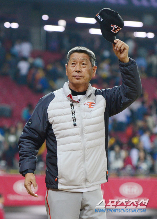 30일 오후 광주 기아챔피언스필드에서 2015 프로야구 한화와 KIA의 경기가 열렸다. 6대0으로 승리한 후 한화 김성근 감독이 팬들에게 인사하고 있다. 광주=김경민 기자 kyungmin@sportschosun.com