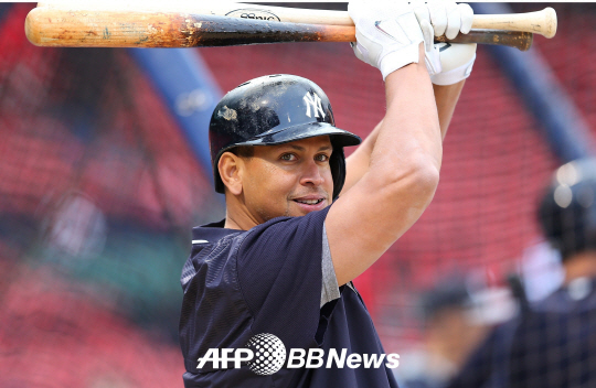 로드리게스는 2일(한국시각) 미국 보스턴 펜웨이파크에서 열린 보스턴 레드삭스와의 원정경기 때 2-2로 맞선 8회초 1사후 대타로 등장해 1점 홈런을 날렸다. 이로써 로드리게스는 시즌 6호홈런과 통산 660호 홈런을 달성해 윌리 메이스와 어깨를 나란히 했다. 이날 경기 전 훈련을 하며 미소를 보이고 있는 로드리게스. ⓒAFPBBNews = News1
