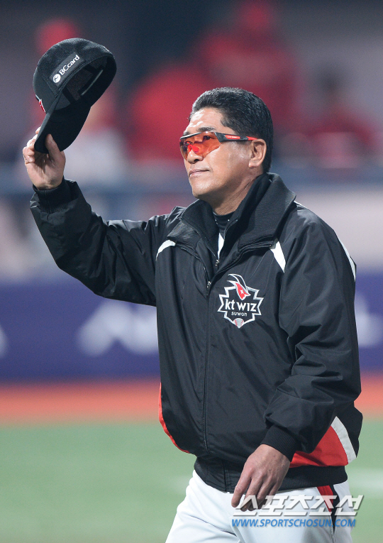 ◇지난달 22일 수원 케이티위즈파크에서 KBO리그 kt 위즈와 SK 와이번스의 경기가 열렸다. kt가 SK에 2대0으로 승리하며 홈 첫 승을 신고했다. 경기 종료 후 팬들에게 인사를 하고 있는 kt 조범현 감독. 수원=송정헌 기자 songs@sportschosun.com