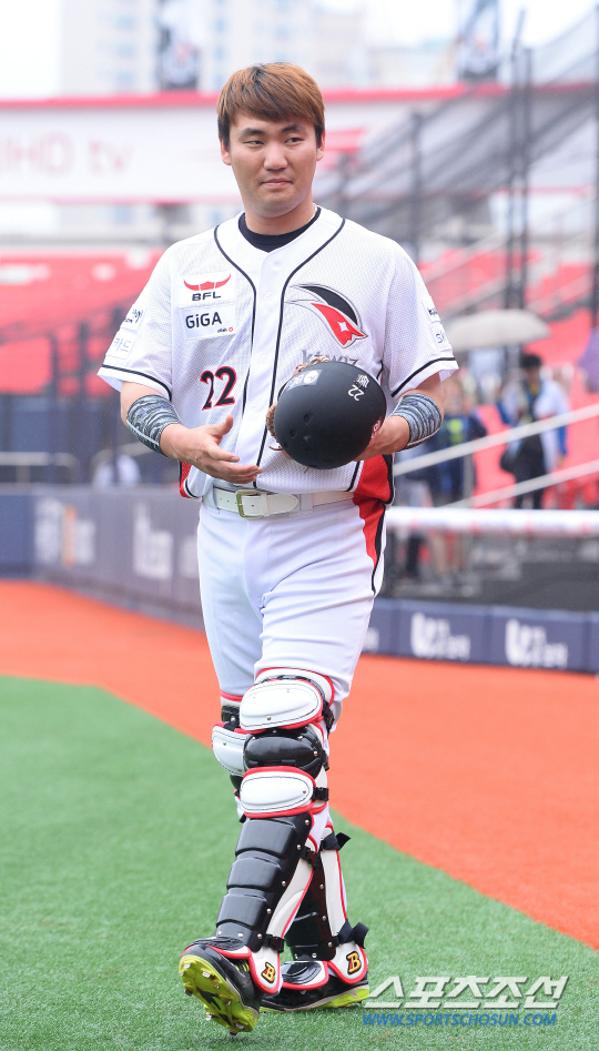 장성우는 이날 곧바로 5번-포수로 선발 라인업에 이름을 올렸다. 경기 전부터 투수들과 사인을 맞추고 분주한 시간을 보냈다.