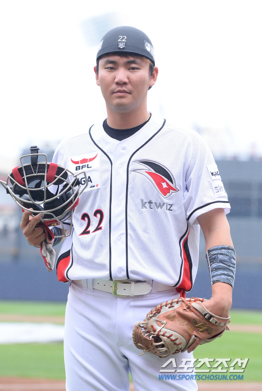3일 수원 케이티위즈파크에서 KBO리그 kt와 NC의 경기가 펼쳐진다. kt 위즈는 전날 2일 롯데와 5대4 트레이드를 전격 실시했다. kt가 롯데로부터 받은 선수는 포수 장성우(25), 윤여운(25)과 투수 최대성(30), 그리고 외야수인 하준호(26), 이창진(24)까지 모두 5명이다. 경기 전 kt 유니폼을 입고 포즈를 취하고 있는 장성우. 수원=송정헌 기자 songs@sportschosun.com/2015.05.03 |