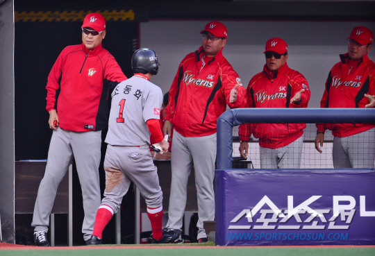 다른 팀 감독이라면 톱타자 결장에 대해 고민이 컸을테지만 김 감독은 대체 타선을 짜는데 그리 긴 시간이 필요치 않았다. 김 수석코치의 보고를 받은 뒤 곧바로 라인업을 수정했다. 이명기의 자리인 1번 좌익수에 박재상을 기용했고, 박재상의 자리인 2번 중견수에는 조동화가 이름을 올렸다. 매우 간단했다. 올시즌 초 조동화는 SK에서 백업요이다. 조동화도 자신의 위치를 잘 알고 있다.