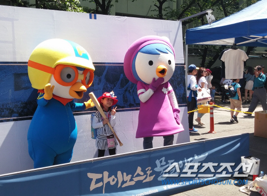 어린이날을 맞아 경기 전 뽀로 캐릭터들과 사진을 찍을 수 있는 포토존을 운영한 NC 다이노스. 창원=이명노 기자 nirvana@sportschosun.com